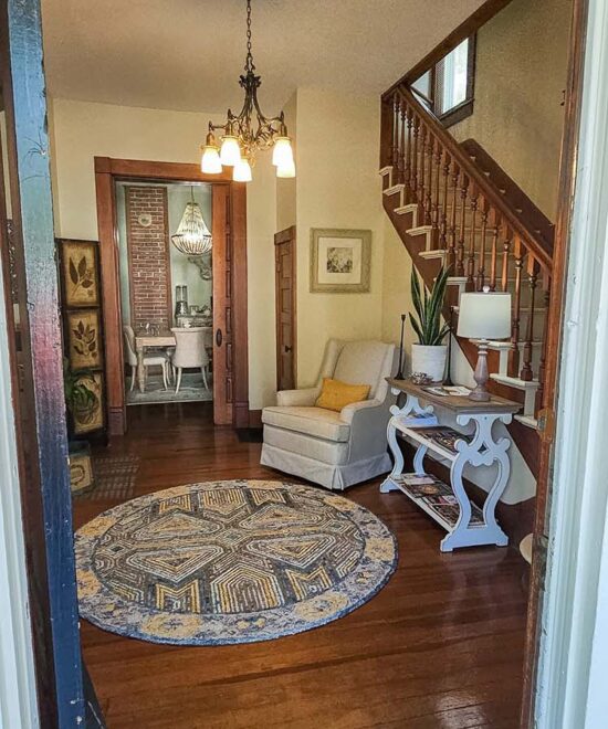 The historic and beautifully renovated 1908 Ridgeway House Bed and Breakfast is perfectly located close to the Historic Loop of Eureka Springs, Arkansas. It is in walking distance to restaurants, theaters and downtown Eureka Springs. The Ridgeway Bed and Breakfast is a great family or group gathering place. Four Bedrooms and three bathrooms. We look forward to hosting you.