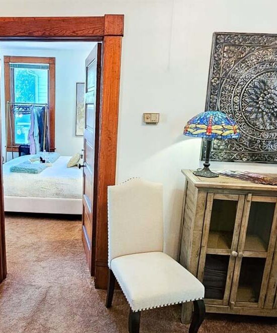 You will have access to the beautiful living room with a fireplace Games are provided. A continental breakfast is provided every morning with coffee, tea, and juices. Sweet and Savory pastries, along with fruit are served. There is a refrigerator, microwave, coffee pot and tea kettle in the common living area. The kitchen is not available to guests.