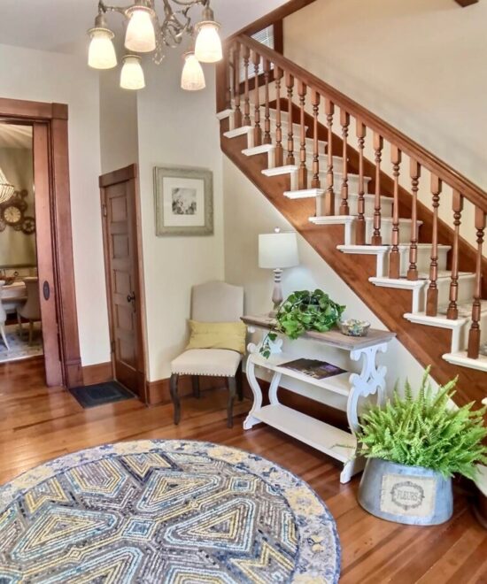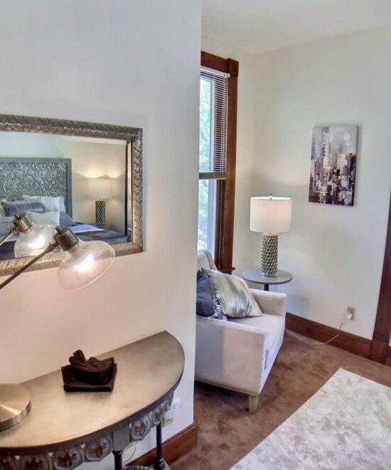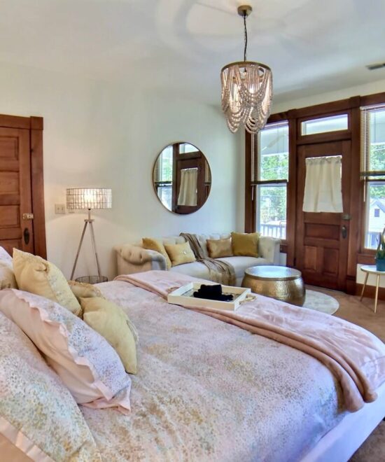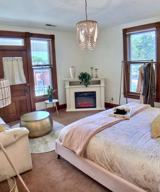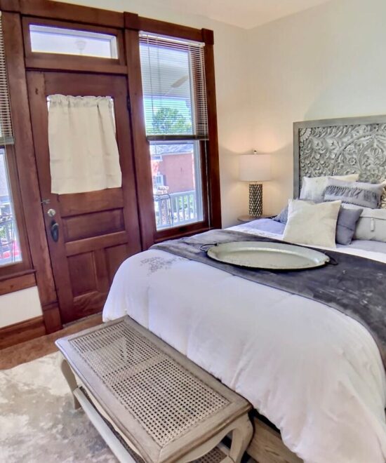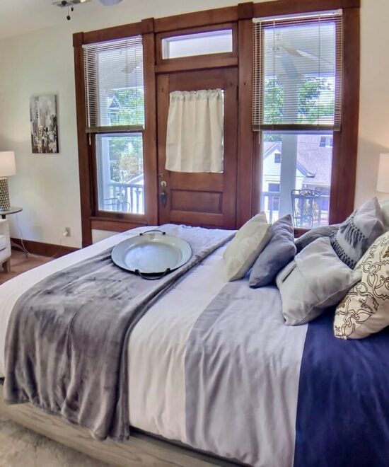 1908 Ridgeway House is a part of the Historic District in Eureka Springs. The recent remodel mixes elegant modern décor a relaxing historic ambiance. You will have a restful and relaxing experience in this well appointed home. NOTE – The Private Bathroom is down the hall from this room. Set your expectations accordingly.
