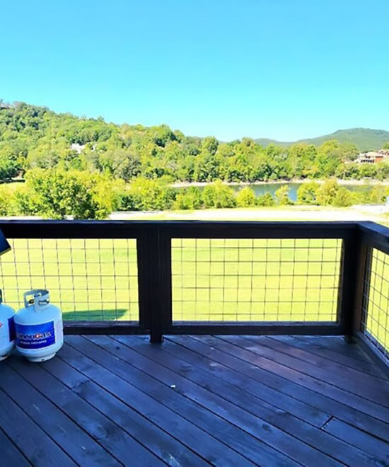 Grill: Charcoal (Note that there are no grills allowed on the deck). There is a grill in a gravel area to the right of the building about 40 feet from the front door.