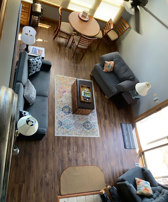 #3 – sleeping area: Sofa Sleeper in living room.