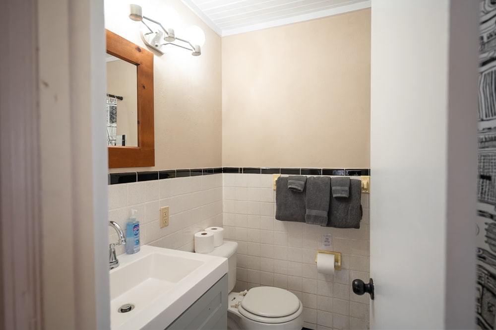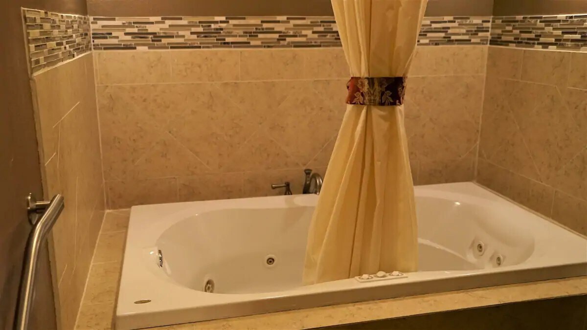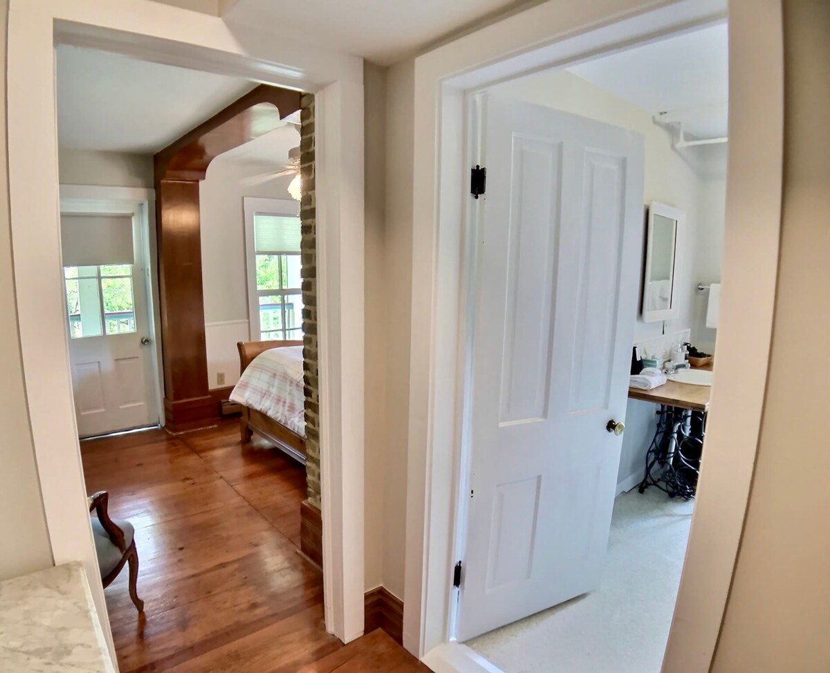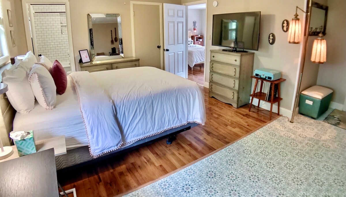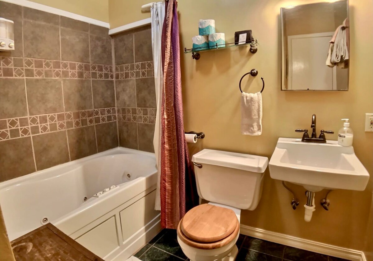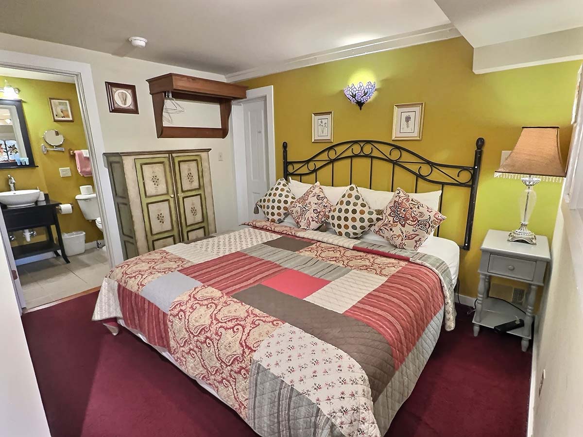 The truffle room has a queen bed with a private connecting bathroom with a jetted...