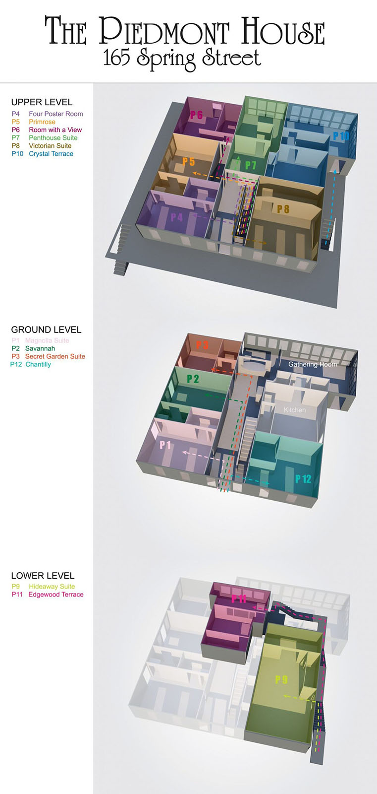 Situated discreetly at the top of the second floor of Historic Piedmont House, "Primrose Suite"...