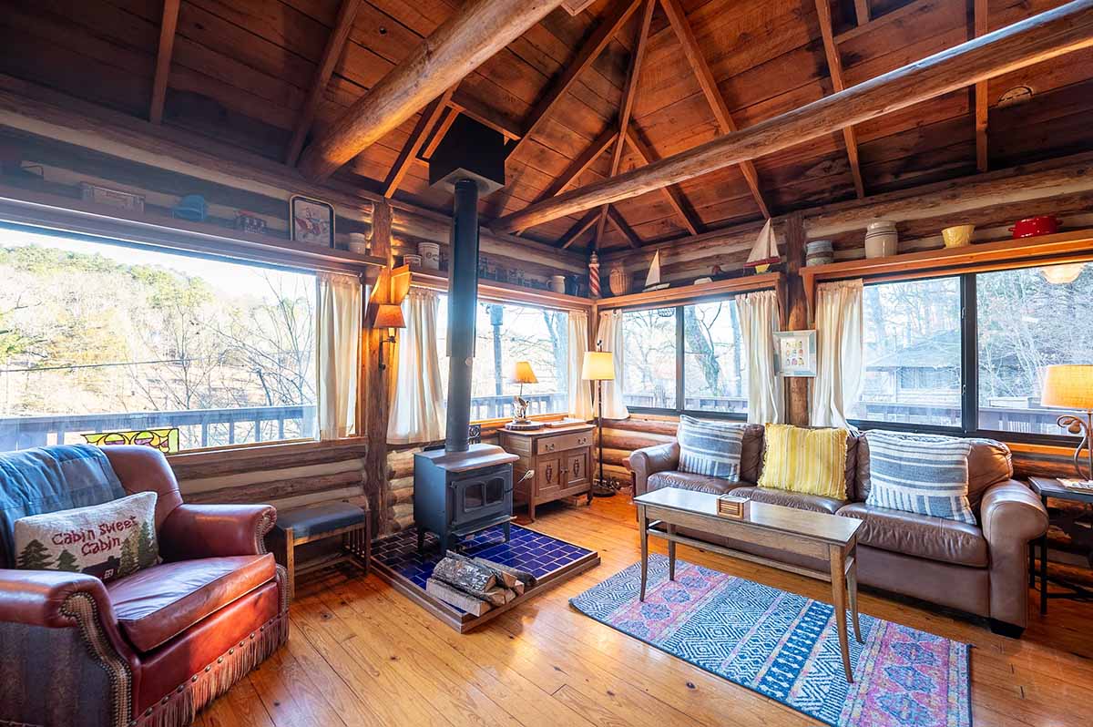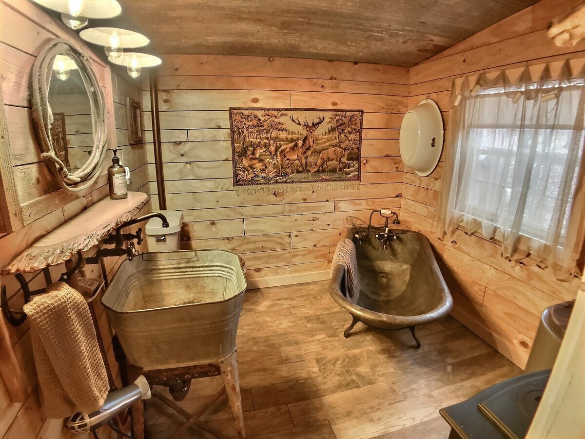 Lake Wood Cabin is an updated Historic one-bedroom log cabin with a new kitchen, New...